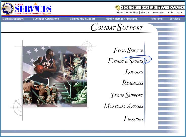 HQ Air Force Services Website Main Navigational Page