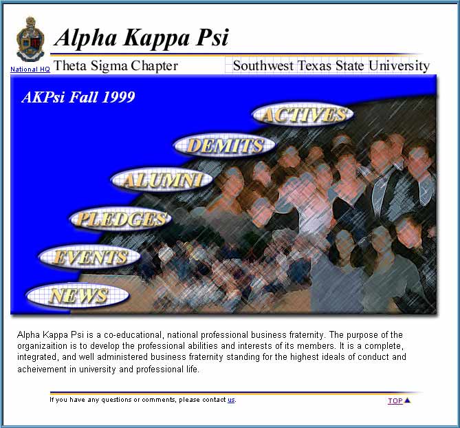 This site was produced to allow members of the fraternity keep track of events, members, and news. The site was designed to allow members to easily update information on every page with no knowledge of HTML or ASP.